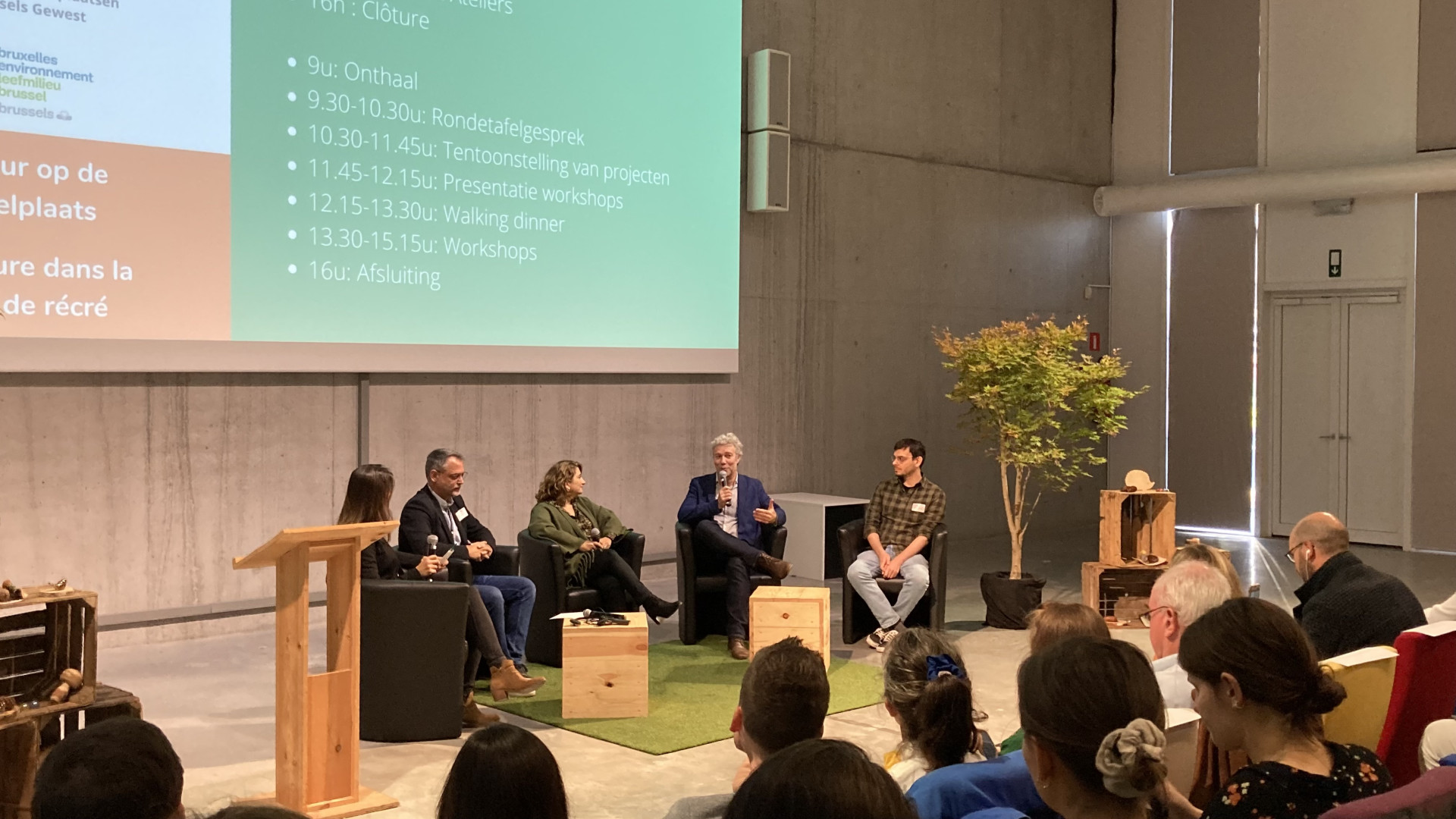La journée a débuté avec deux tables rondes pour expliciter les enjeux liés à la végétalisation des cours d’école et écouter le témoignage d’écoles impliquées.