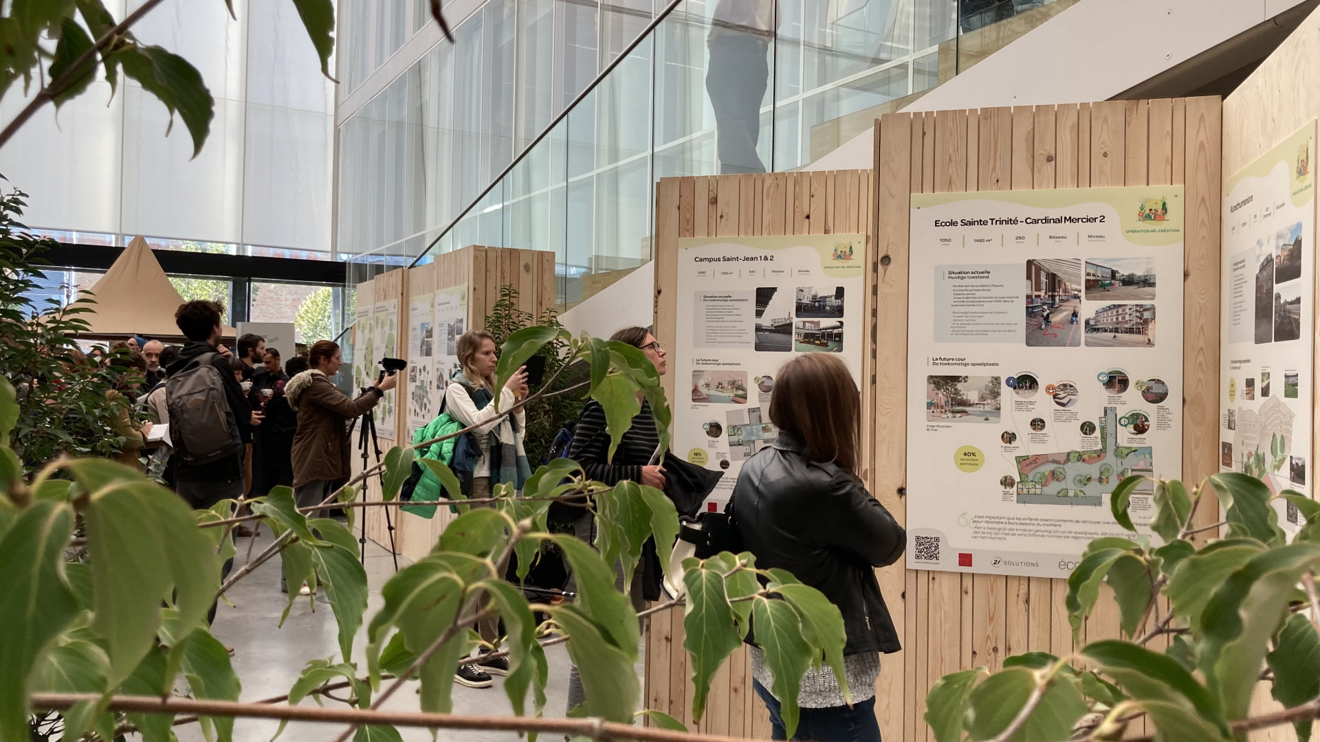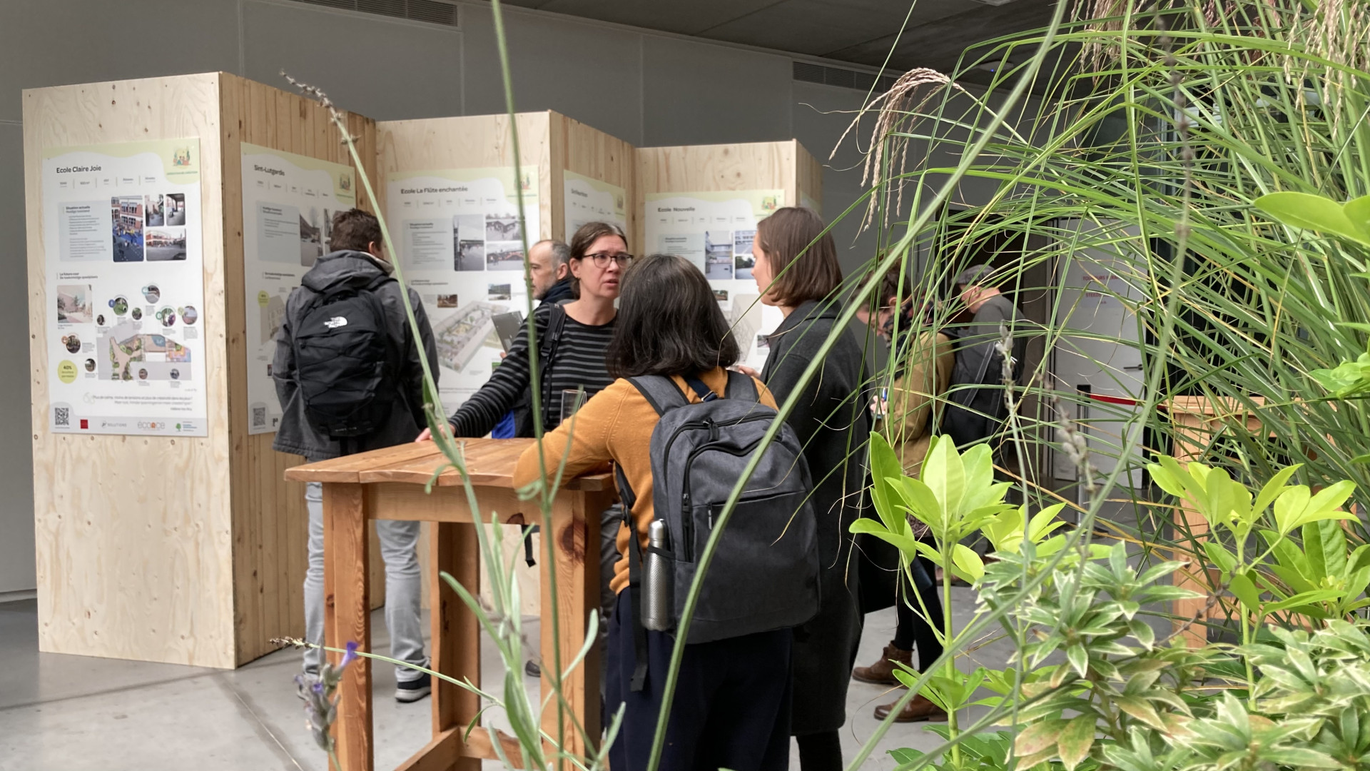 Les participants ont pu découvrir les plans finalisés des 19 écoles participant au projet Opération Ré-création, présentés sur des panneaux exposés dans l’atrium de Bruxelles Environnement.