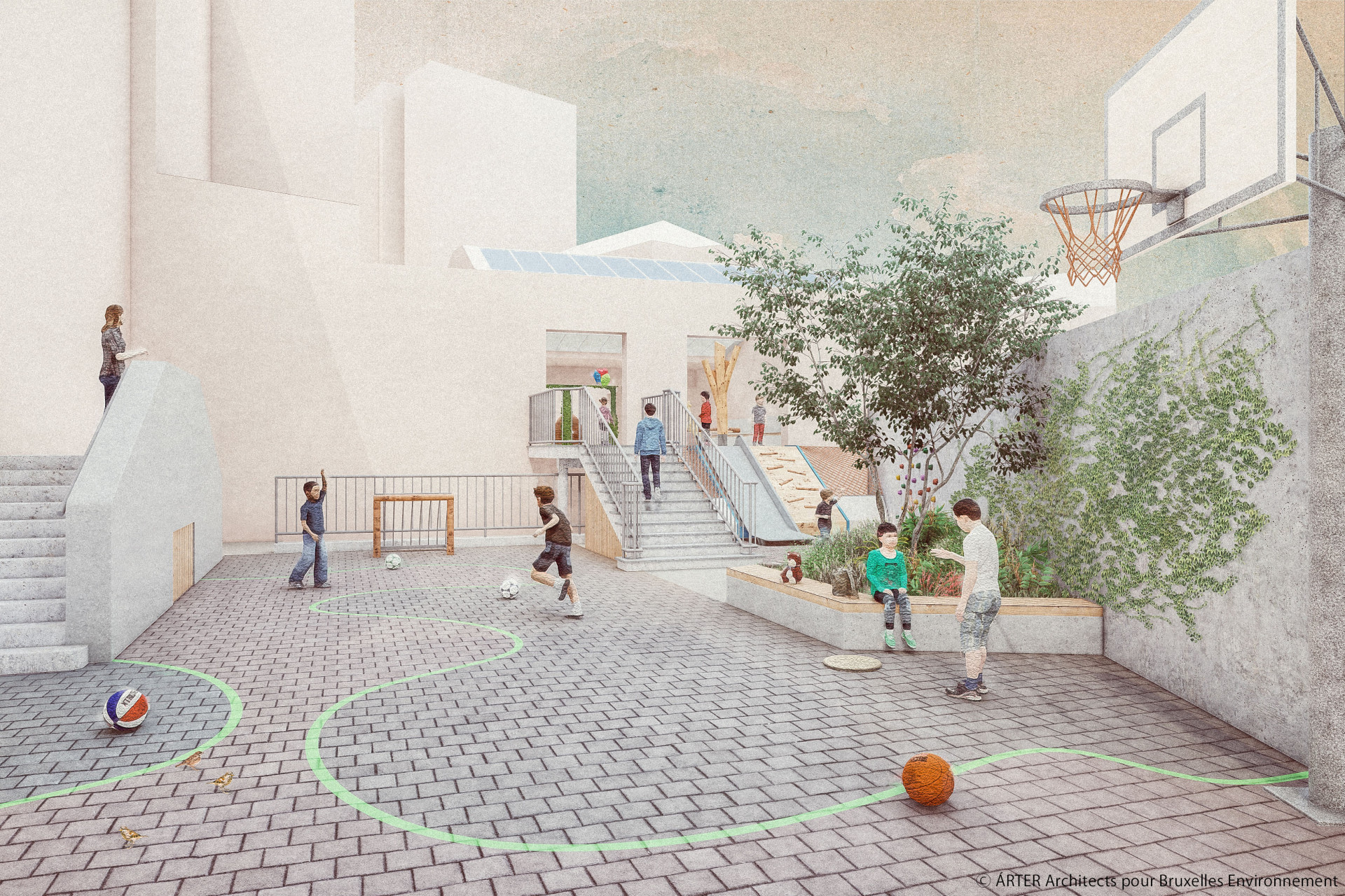 Opération Ré-création a pour objectif de transformer les cours de récréation en espaces de jeu et de ressourcement végétalisés, mixtes et de qualité, tout en amenant de la nature rafraichissante dans le quartier.