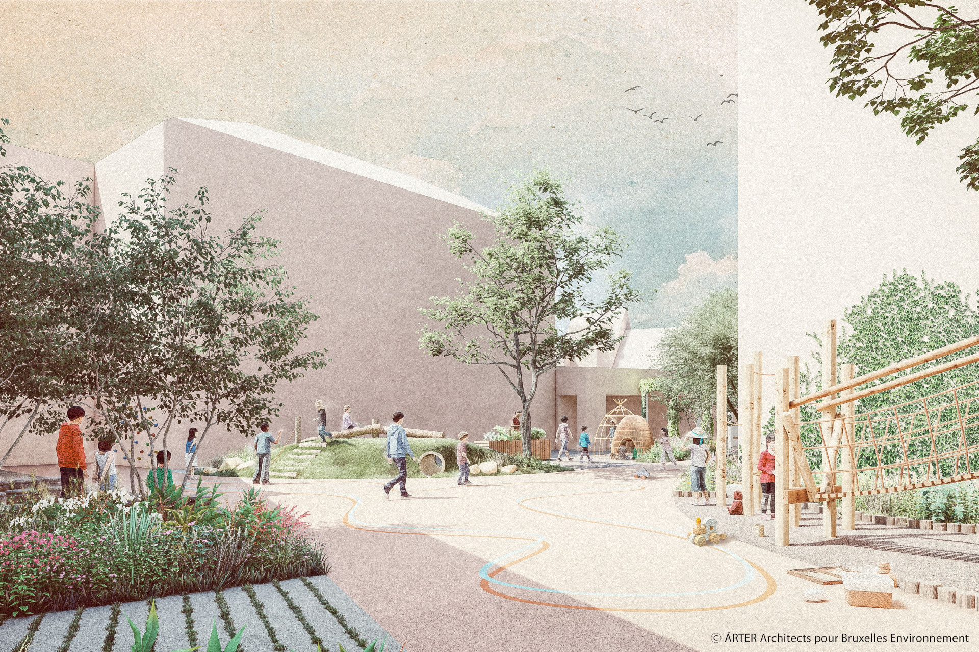 Repenser la cour a été identifié comme une priorité pour améliorer les infrastructures et le bien-être des enfants, ce qui est l’un des 4 axes de notre contrat d’objectifs, défini à la demande de la Fédération Wallonie-Bruxelles (FWB). Alors, lorsqu’ils ont vu passer l’appel à projets de Bruxelles Environnement, huit de nos enseignants se sont mobilisés sans compter leurs heures pour y répondre. Quelle satisfaction que notre école ait été sélectionnée !