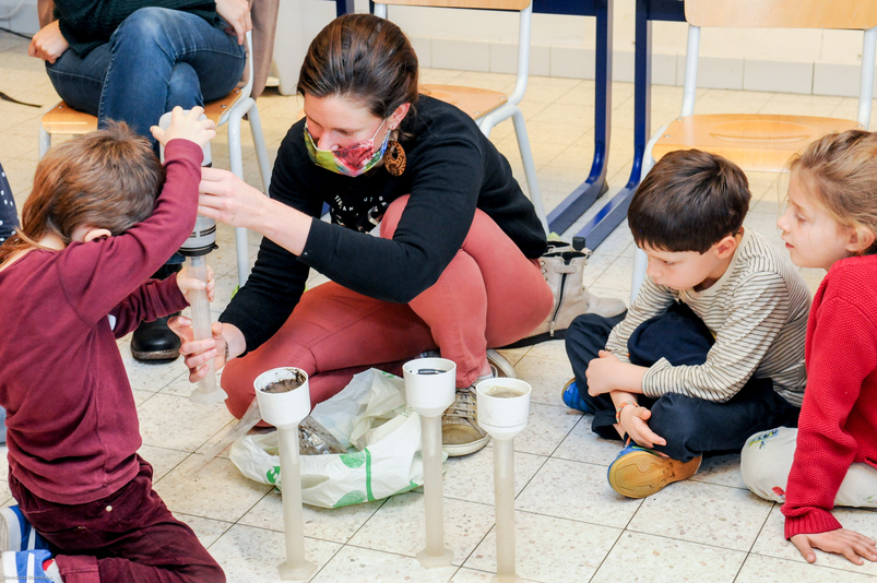 Jeu autour de la biodiversité et des maillages vert et bleu en ville – Découverte des notions d’ilots de chaleur et de fraicheur en ville – Expérimentation du concept de perméabilité par l’observation de l’écoulement de l’eau à travers différents matériaux