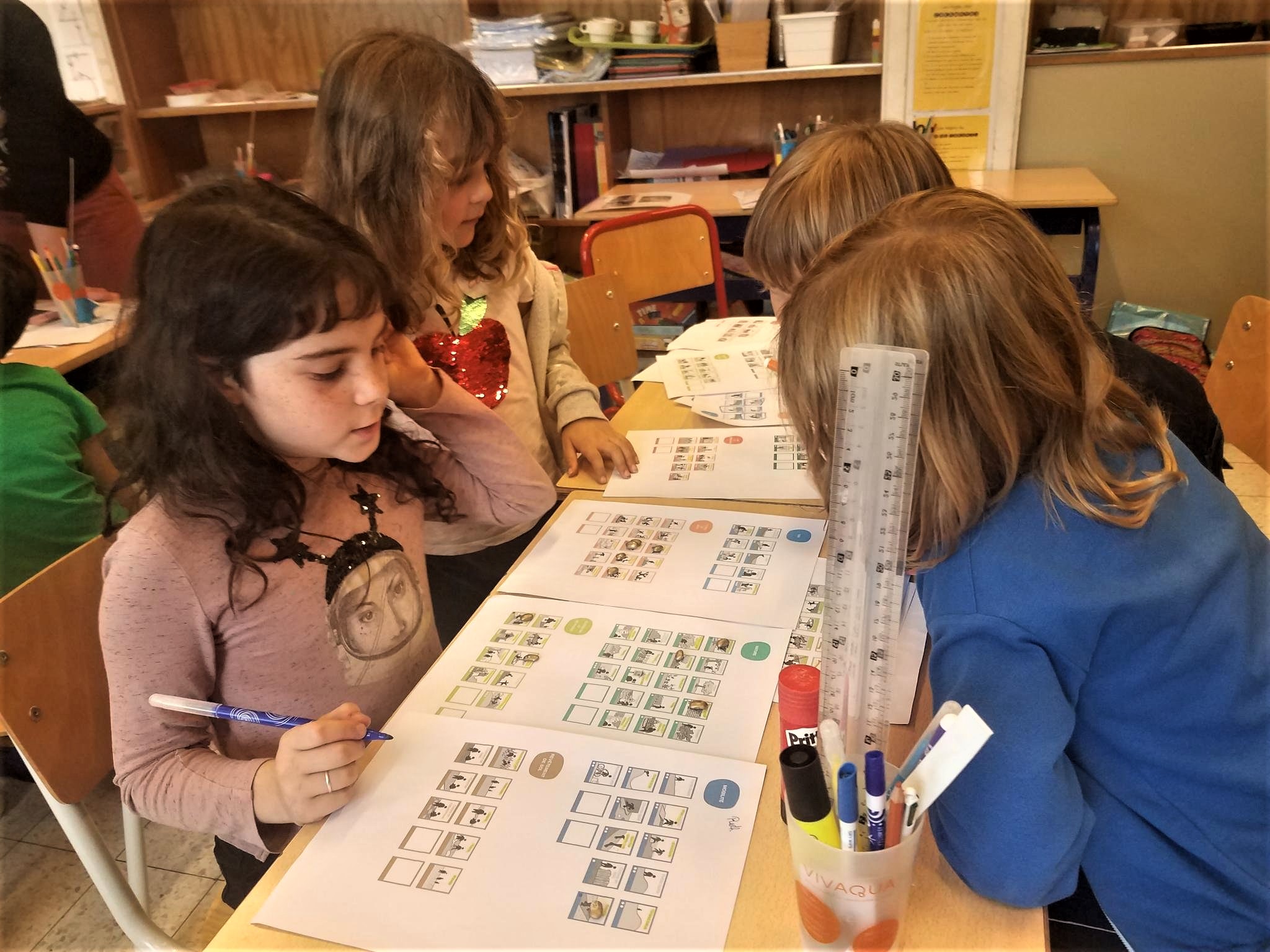 Un espace végétalisé, c’est aussi plus de confort en cas de forte chaleur. Les enfants découvrent les impacts du changement climatique sur la vie en ville. Ils entament alors une réflexion collective sur base de photos : quels aménagements de la cour nous apporteraient plus de fraicheur en été ?