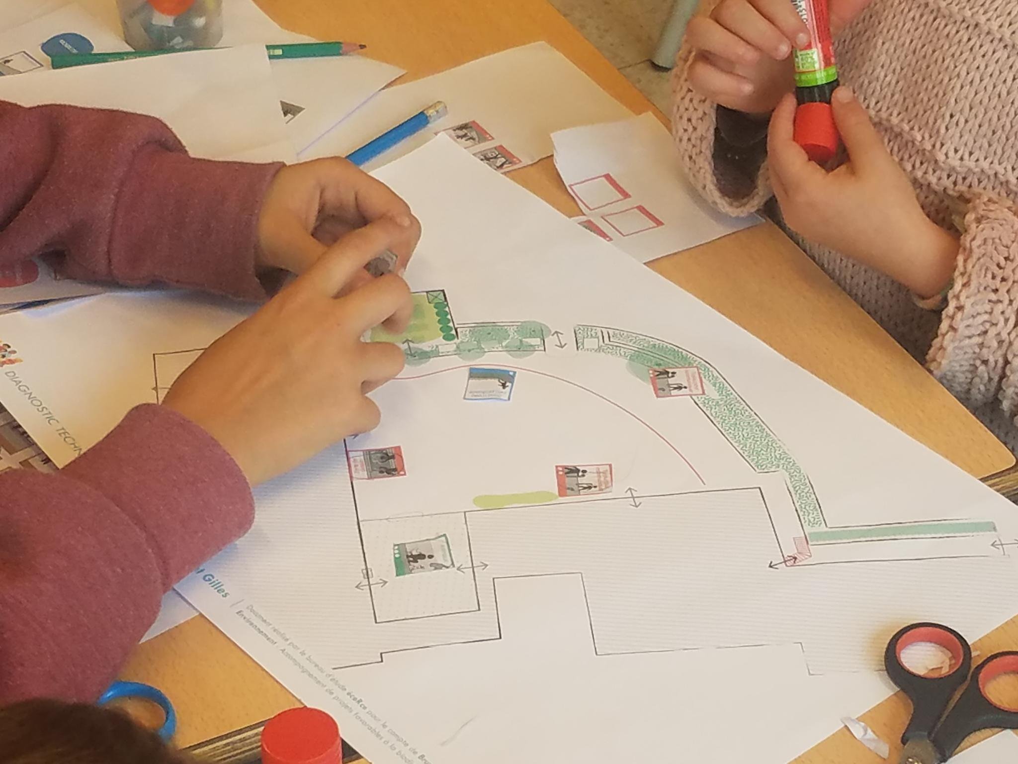 L’Ecole Nouvelle à Saint-Gilles a rassemblé une quinzaine d’élèves pour représenter les différents niveaux de classe dans le processus de création de la nouvelle cour de récré. De la 3ème maternelle à la 6ème primaire, ils mettent du cœur à l’ouvrage pour ce premier atelier !
