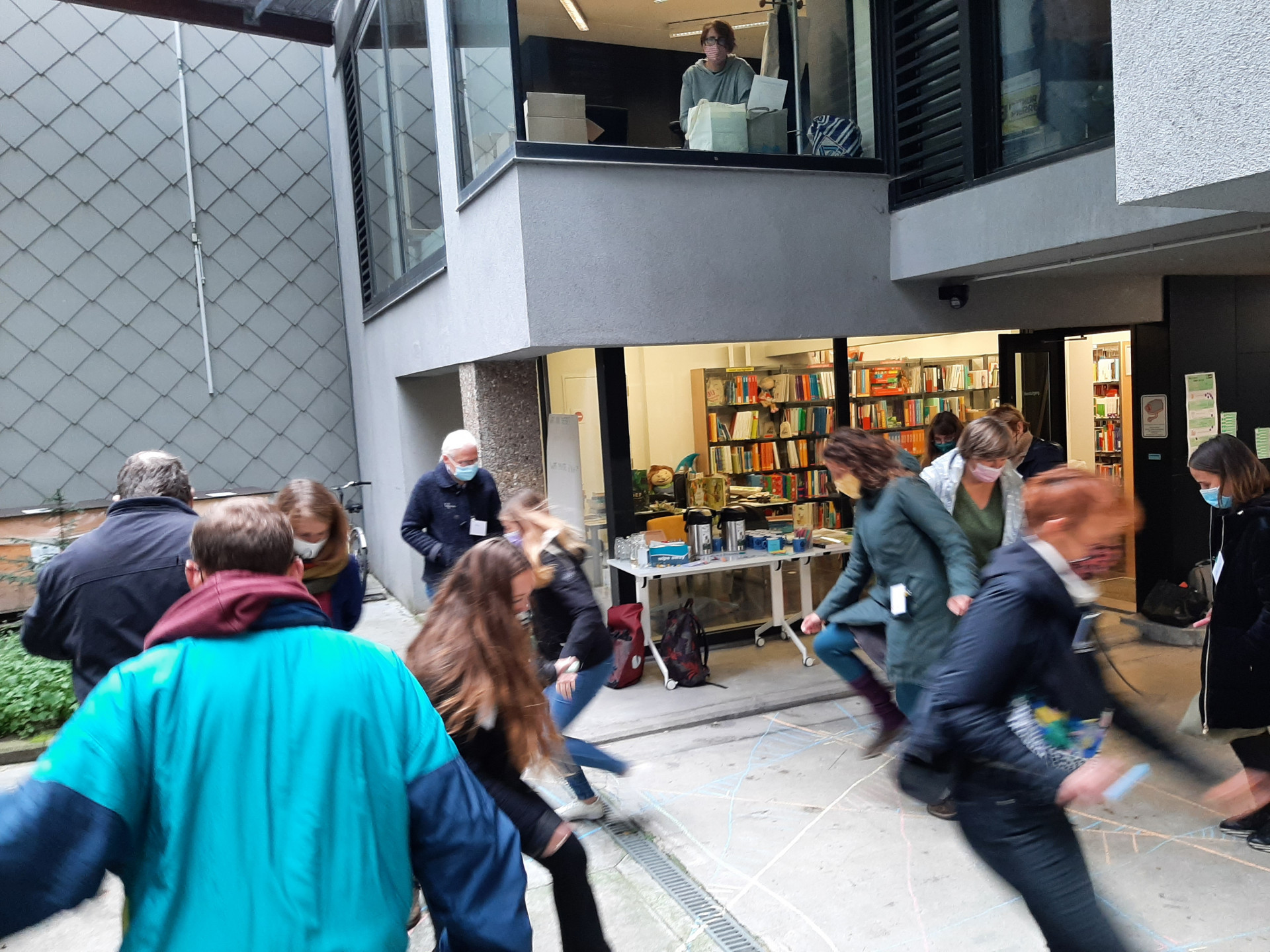 De deelnemers gingen op de koer van het Onderwijscentrum Brussel aan de slag met krijt. Ze tekenden er verschillende vormen mee en deden oefeningen al bewegend langs de lijnen. Daarna gingen ze wandelen door de straten om terwijl rekensommen te maken met de huisnummers. Wist je dat je zelfs maaltafels kan oefenen aan de hand van ramen? Toen ze aankwamen op de Vismarkt was het tijd voor taal. Er werden objecten gelinkt aan letters en omgekeerd. Ze werden gerangschikt en er werden verhaaltjes mee gemaakt.