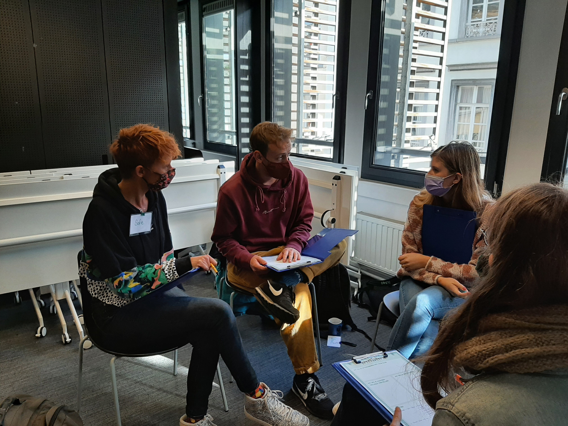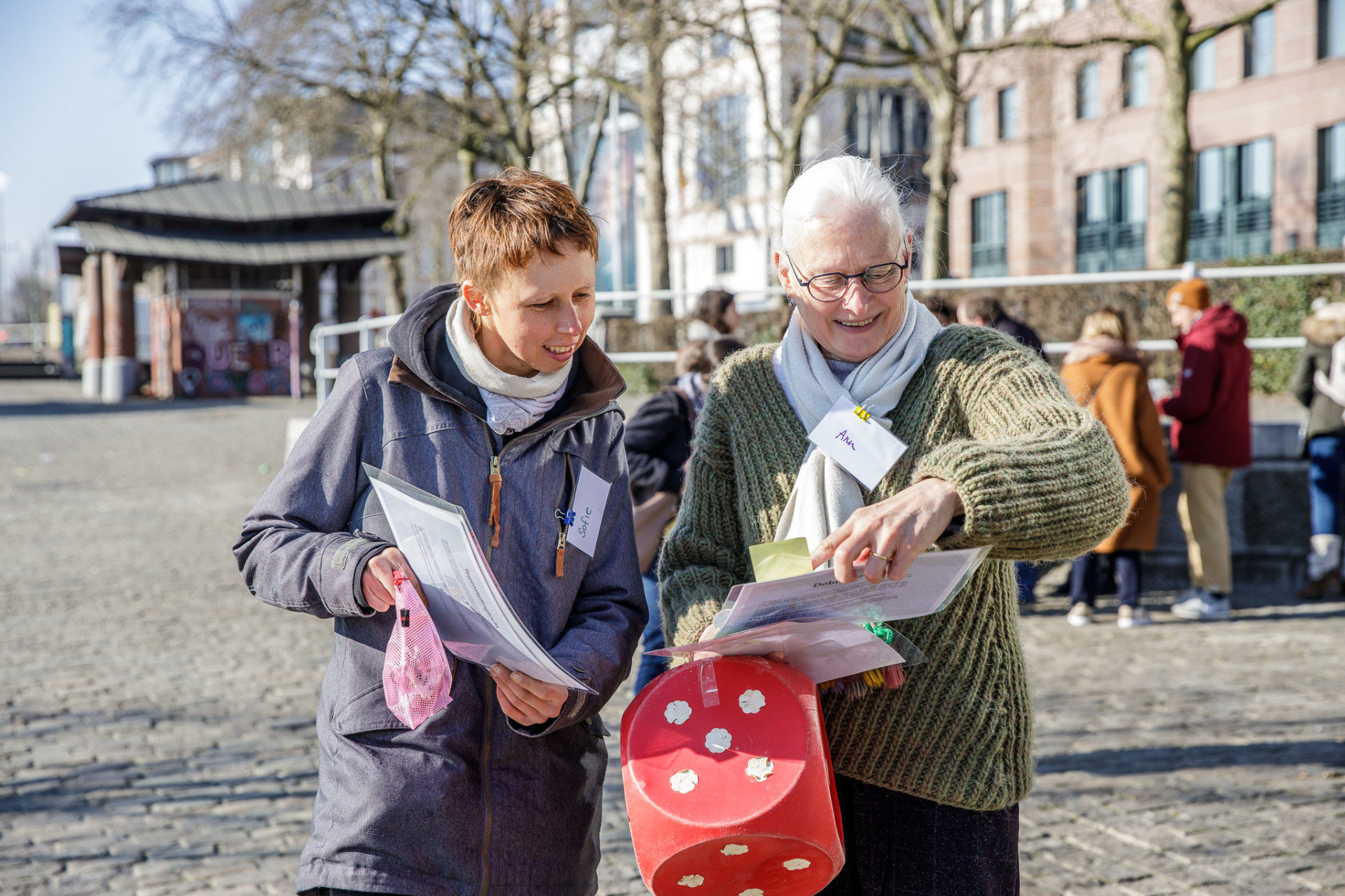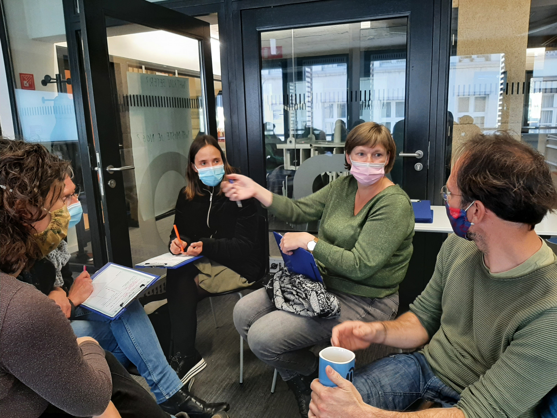 De deelnemers vertrokken daarna in groep naar Leefmilieu Brussel op de Thurn & Taxis-site. Onderweg voerden ze uiteenlopende opdrachtjes uit rond ruimtelijke ordening, natuur, vroeger en nu en muzische vorming. Na een welverdiende pauze wisselden we uit rond de thema’s.