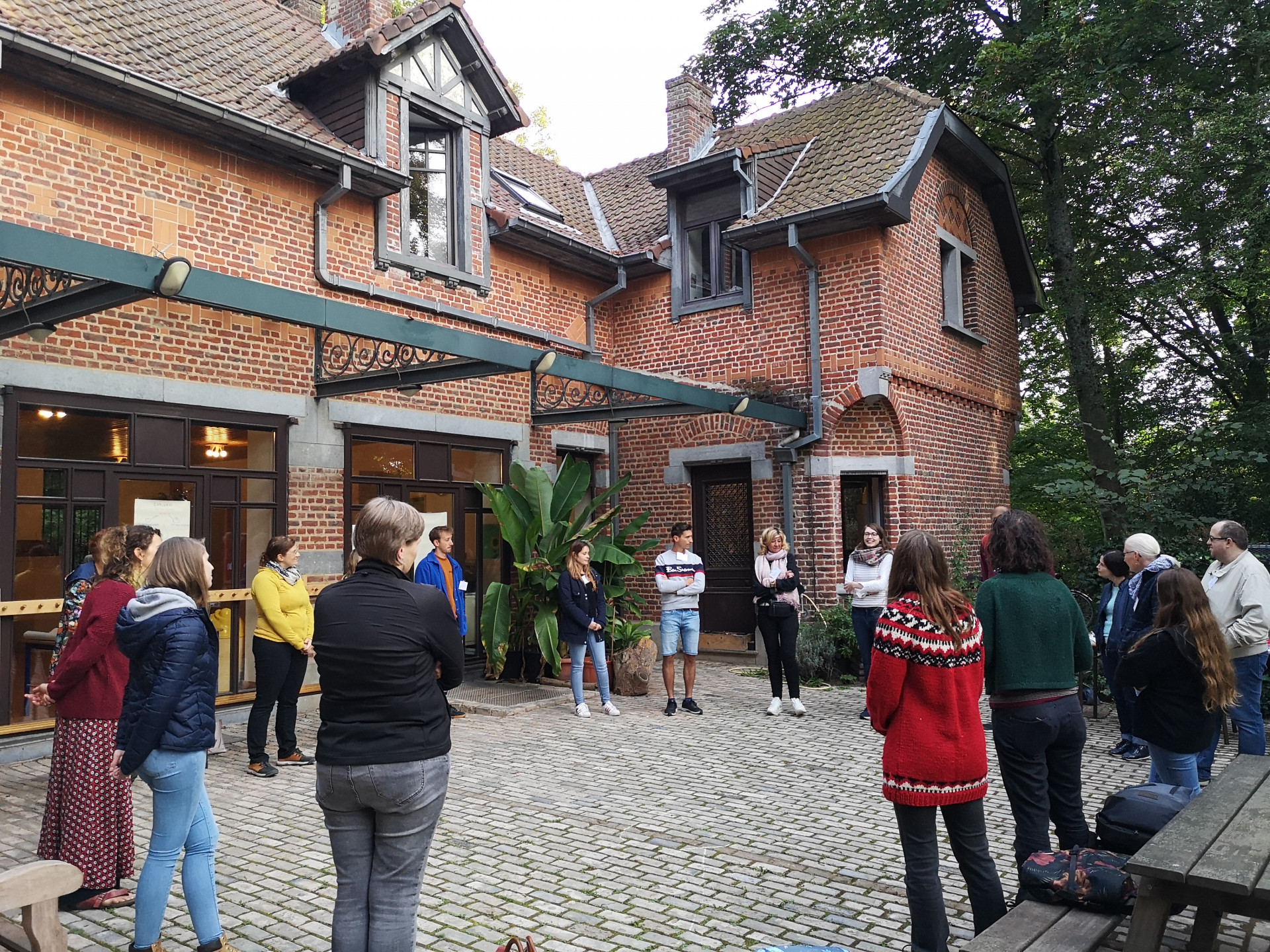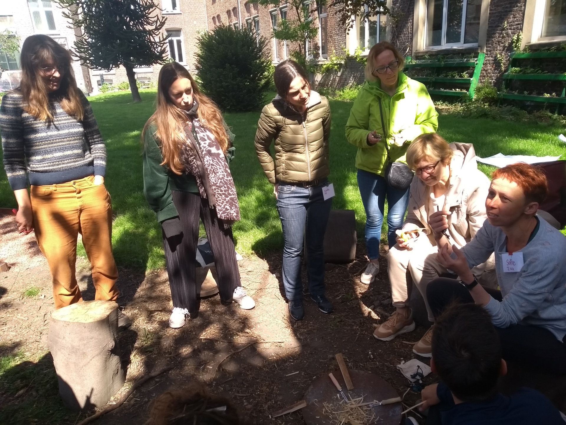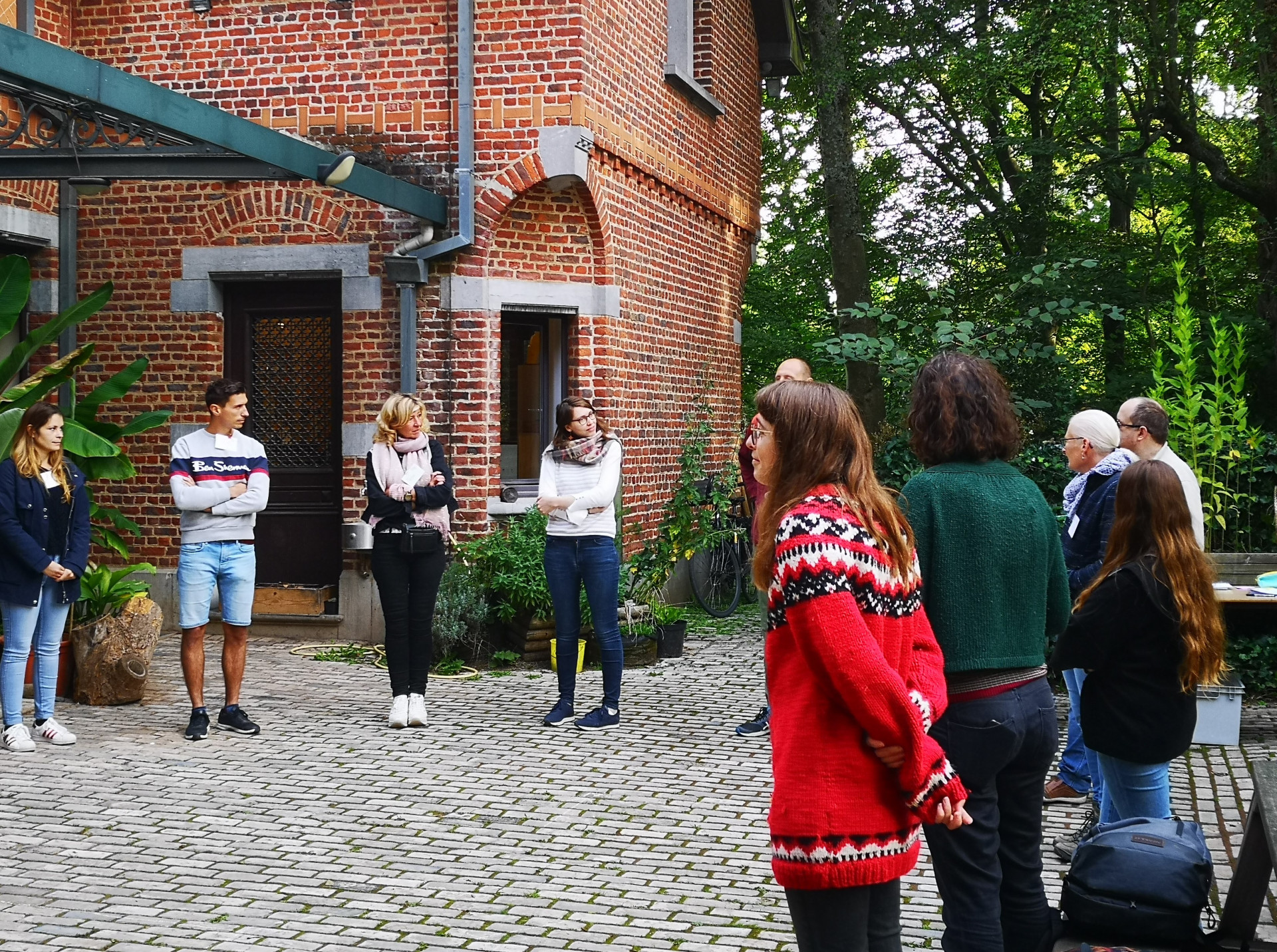 Op weg naar de volgende locatie in Molenbeek wisselden we onder andere uit over onze ervaringen op de buitenlesdag. Toen we toekwamen in de tuin van La Salle stond Juf Sofie ons al op te wachten. Zij mag deze tuin als buitenklas gebruiken en komt hier elke donderdag op ontdekking met haar kleuters.