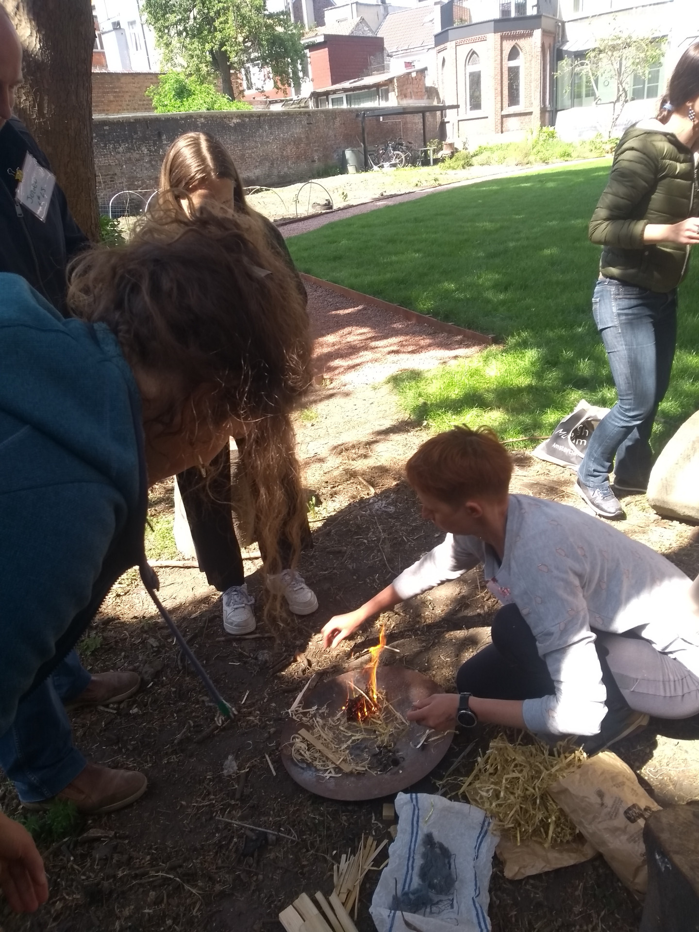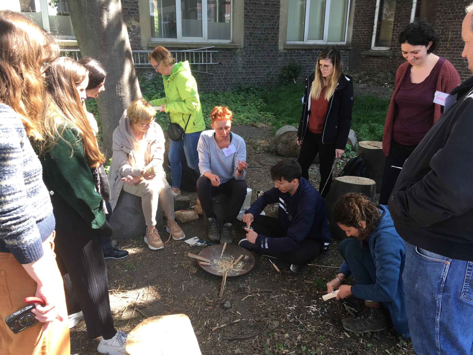 Ze gaf ons er een vuurdemonstratie. Ze legde stap voor stap uit hoe ze dit aanpakt met haar klas, welke leerkansen zich aandienen, welke voorzorgsmaatregelen ze neemt en wat de reacties waren van de ouders. Een topervaring en een mooie feestelijke afsluiter van ons vormingstraject want met onze zelf gevonden stok konden we marshmallows roosteren boven ons zelf gemaakt vuur!