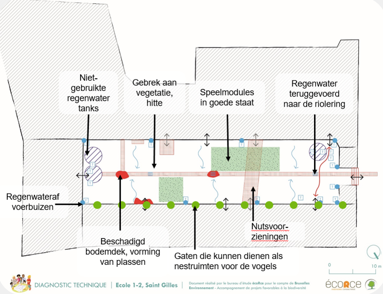 Het studiebureau Ecorce heeft elke school bezocht om een plan van de speelplaats te maken en een technische diagnose te stellen: