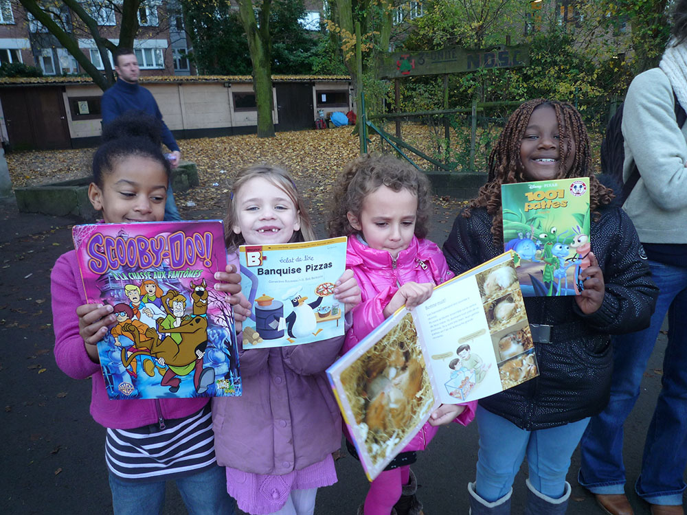 Het enthousiasme van de allerkleinsten bleek aanstekelijk: in één week is 346 kilo kleding afgegeven aan de deuren van het secretariaat. Op die dag waren de leerlingen van het 6e leerjaar druk in de weer om de verzamelde kleding te wegen. Ze hebben vervolgens de hoeveelheid bespaarde CO2 dankzij die inzameling berekend. In totaal is zo 3114 kg CO2 bespaard (of 9kg CO2 per kg ingezamelde kleding). Andere activiteit op het programma: het ruilen van boeken. “We hadden aan alle kinderen gevraagd om een boek dat nog in goede staat was mee te brengen”, legt Chantal Chojnacki uit. Op de speelplaats hebben de leerkrachten dan aan de leerlingen gevraagd om in een kring te gaan staan en hun boek voor hen te leggen. Elke leerling is dan bij zijn vriendjes gaan zoeken naar een ander boek om daarna opnieuw naar zijn plek te gaan met de nieuwe aanwinst. De andere klassen van de kleuters en de lagere school hebben die ‘ruilhandel’ in hun klas gedaan.