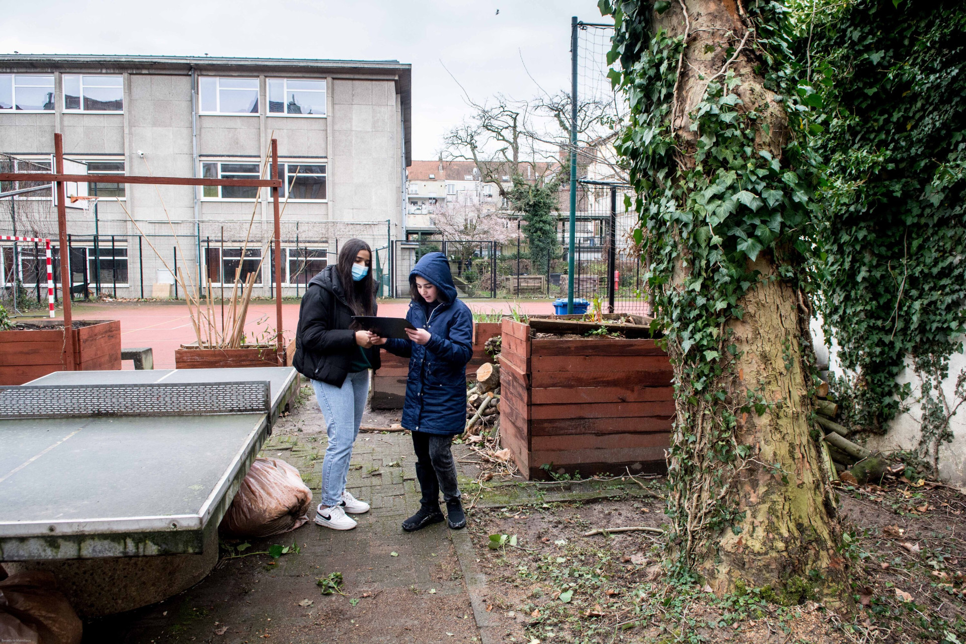 Qu’en est-il de la biodiversité à l’école ? Est-elle la bienvenue et d’où peut-elle venir ? « Il y a beaucoup de grands parcs aux alentours mais on est entourés par les rails du train qui peuvent être des obstacles pour certains animaux comme les hérissons par exemple. Il y a déjà pas mal de pigeons dans la cour. On pourrait installer des nichoirs pour accueillir d’autres espèces d’oiseaux », propose Nedjmija. « Et aussi planter plus de fleurs pour attirer les abeilles », conclut sa voisine.