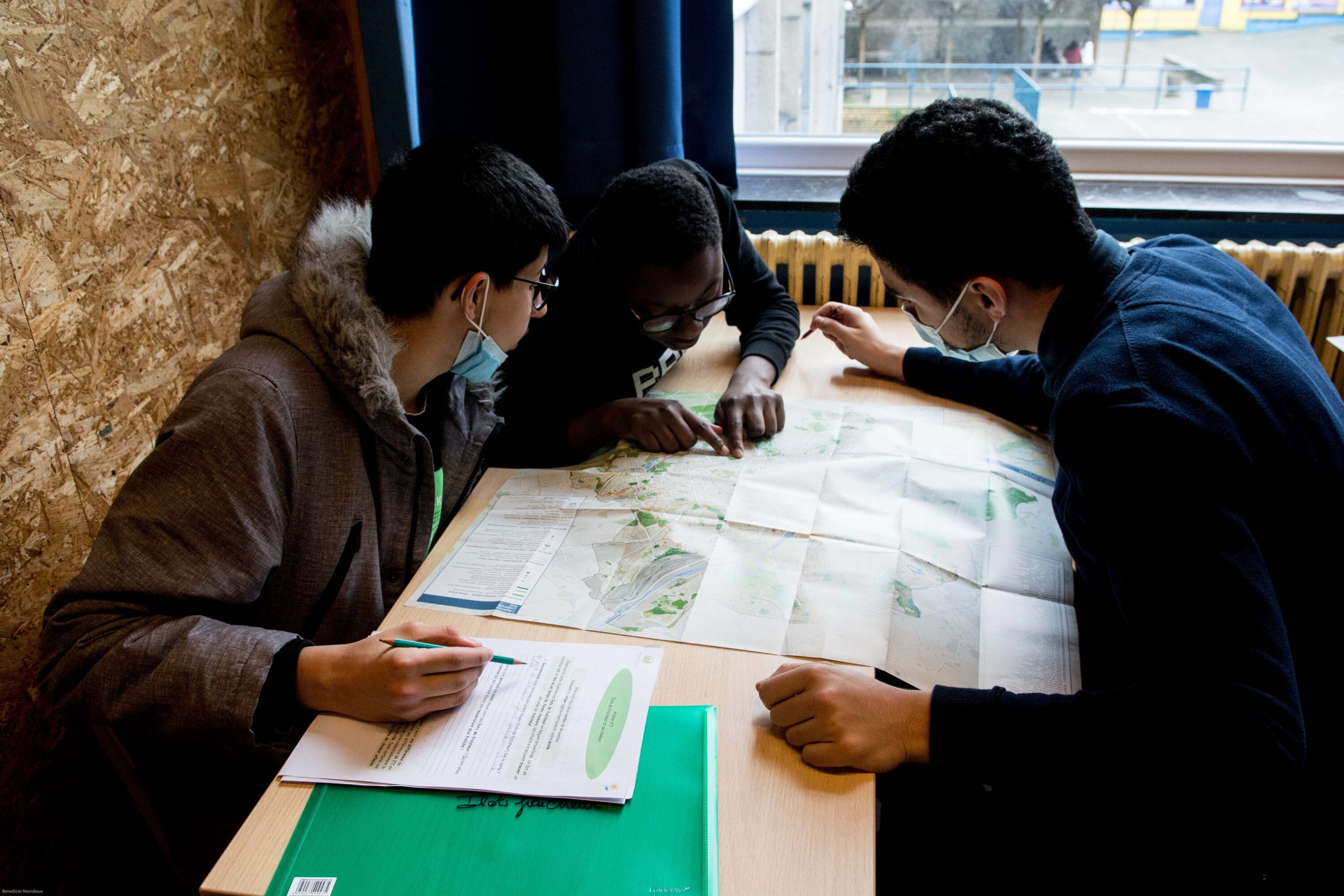 Les élèves sont regroupés par 3 ou 4 et découvrent le dossier pédagogique qui leur est assigné. Pour certains et certaines, on y aborde le maillage vert et bleu, pour d’autres, les ilots de fraicheur ou encore la gestion de l’eau. « Est-ce que notre cour de récréation pourrait accueillir un écureuil ? », demande Inès. C’est justement le sens de la démarche : découvrir comment la cour d’une école bruxelloise peut contribuer à l’amélioration de l’environnement et répondre à certains aléas climatiques.