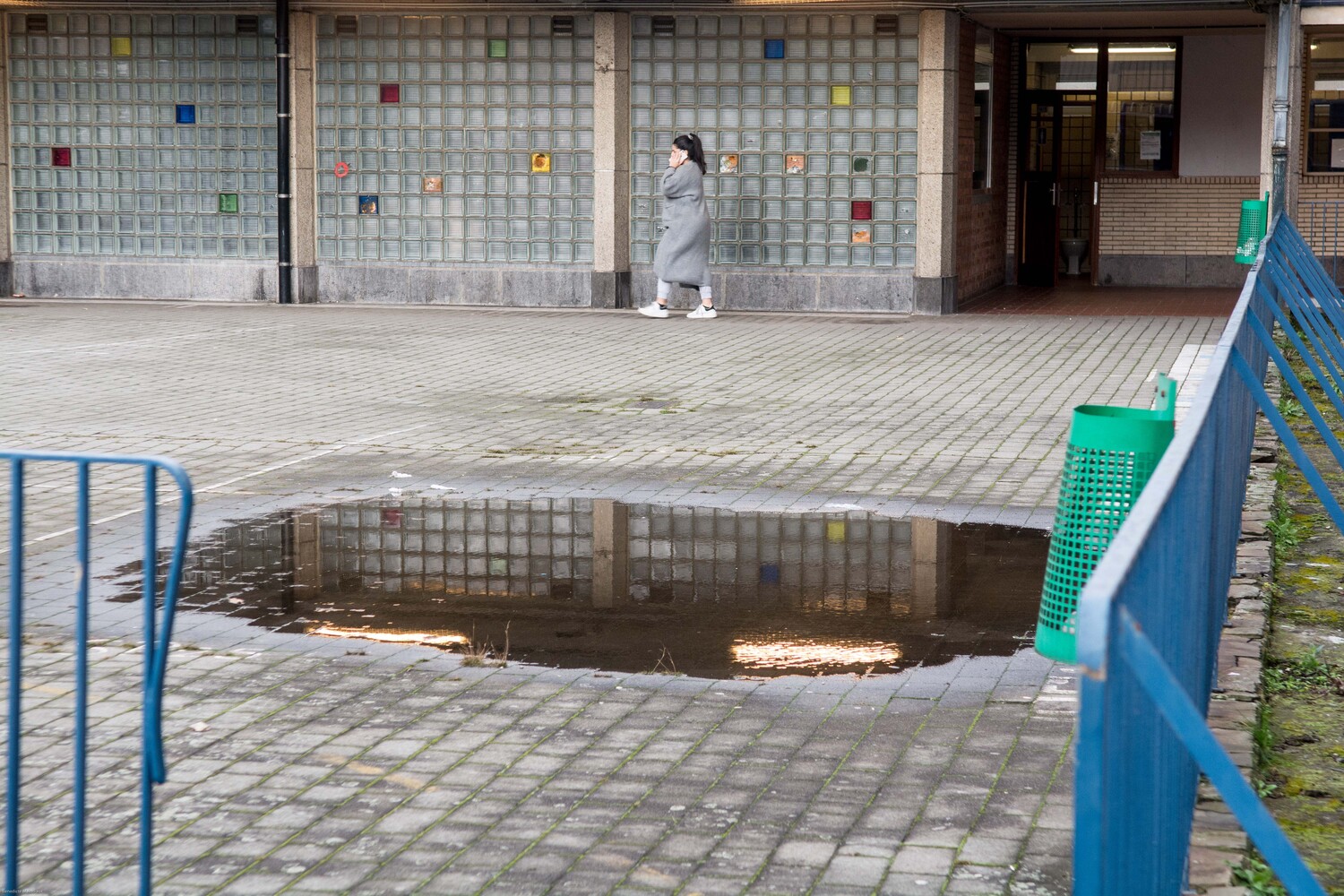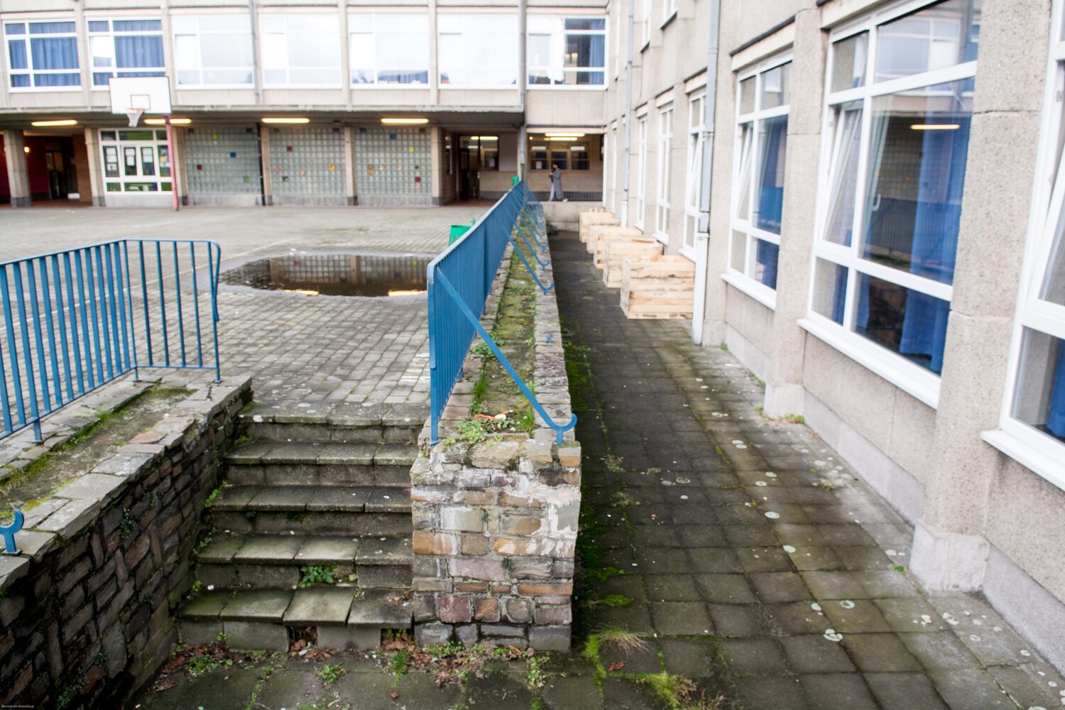 Il devrait y avoir beaucoup plus de végétal dans la cour pour absorber l'eau. Dès qu’il pleut, la cour est remplie de flaques d’eau. Rien n’est absorbé.