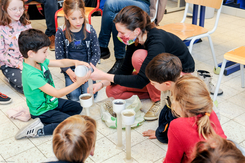 La matinée était dédiée à la sensibilisation des élèves aux enjeux environnementaux d’une cour végétalisée :