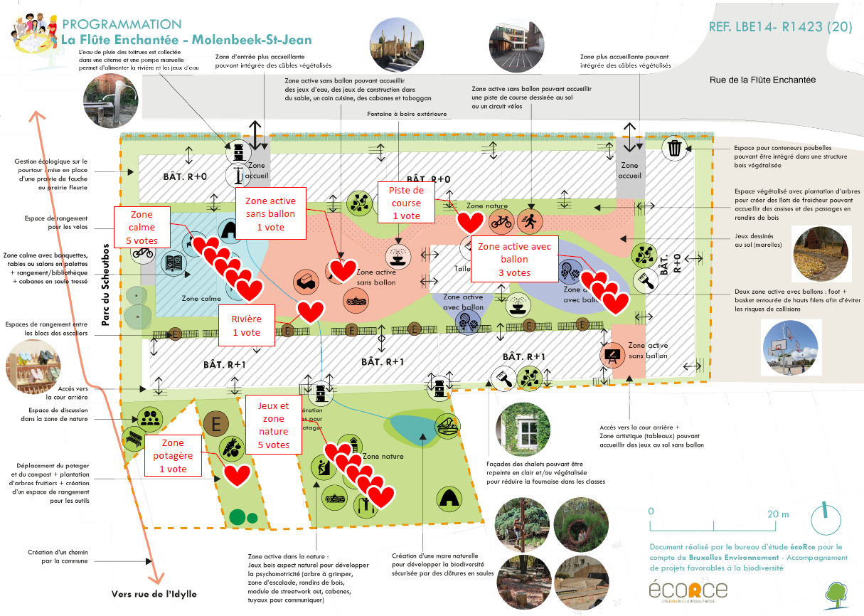 Sur base de ces plans, les écoles et leur P.O. ont pu identifier leurs priorités et définir une vision collective pour leur future cour.