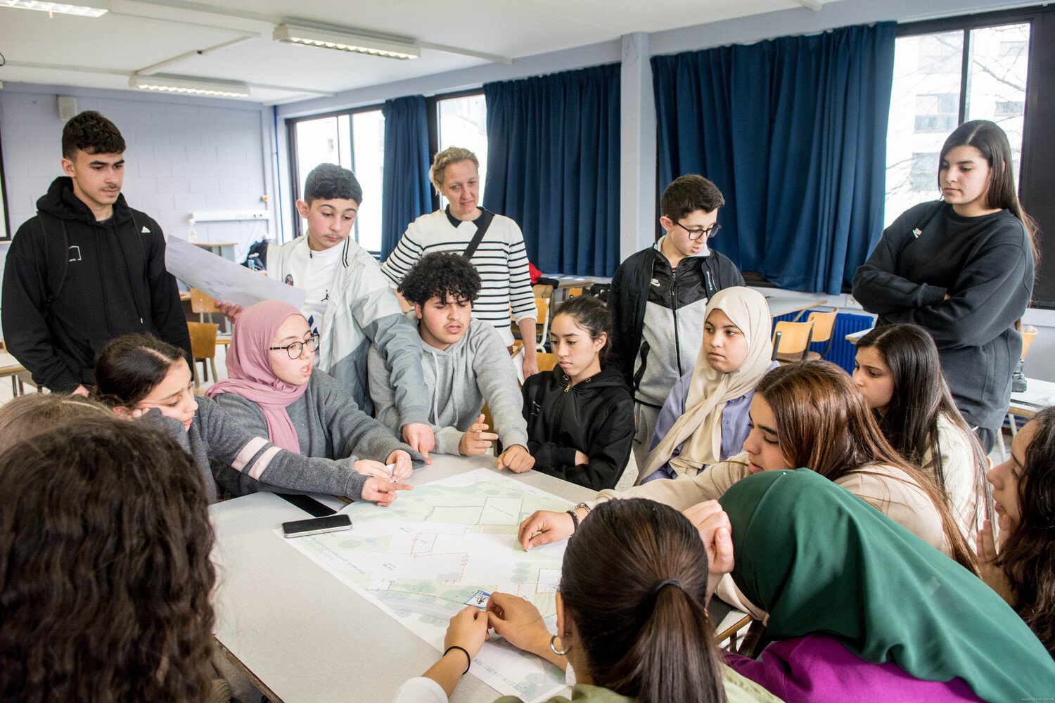 Un groupe de 12 à 16 élèves ambassadeurs a participé à la journée organisée par l’asbl Tournesol-Zonnebloem dans chaque école. Au moins un·e élève de chaque niveau est présent·e pour représenter les besoins et envies de son groupe d’âge.