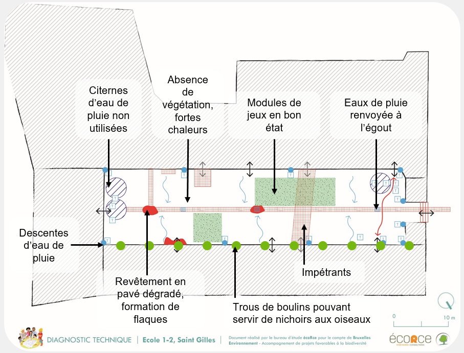 Le bureau d’étude Ecorce s’est rendu dans chaque école pour créer un plan de la cour et en faire le diagnostic technique :