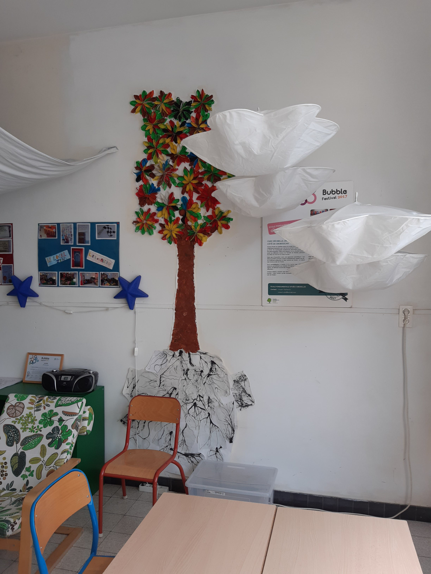 Suite à cet événement, chaque classe a pu voter pour une action à mettre en place afin de limiter le bruit au sein de l’école. Elles avaient le choix entre : l’insonorisation des locaux, la pose de balles de tennis aux pieds des chaises, l’utilisation de sets de table au réfectoire et l’installation d’un local DECIBELLE dédié au calme. C’est ce dernier qui a remporté le plus de voix et devinez quoi, 5 ans plus tard ce local existe toujours !