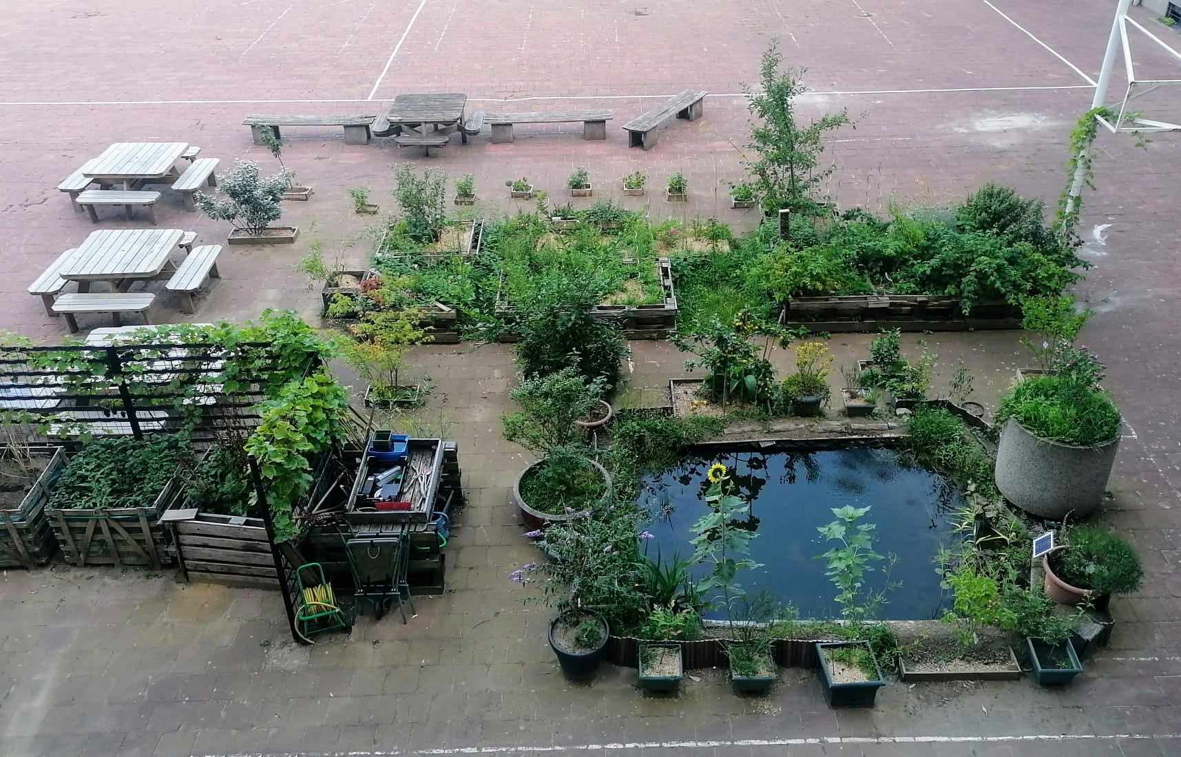 Artëm : Le projet « végétalisation » est notre projet le plus important. En quatre années, nous sommes passés de 40 à 400 plantes. C’est une grande fierté ! Cela s’est fait progressivement : on a commencé avec quelques bacs potager, quelques plantes. Ensuite, on a agrandi le potager, on a construit une mare dans la cour…