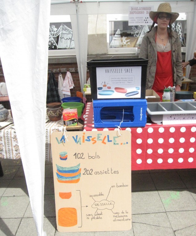 Le jour de la Fancy Fair, une équipe « vaisselle » a été mise en place et a remporté un franc succès. Les essuies avaient été réalisés par des enfants de l’école il y a quelques années et le lave-vaisselle de l’école a servi à laver les gobelets ensuite séchés à la main par les enfants et les parents avant de les ranger.Même si le groupe environnement tient un stand à chaque événement pour sensibiliser les parents en présentant les actions entreprises durant l’année, en prévoyant des activités pour les enfants et des panneaux d’explication, l’action la plus difficile à réaliser a été la sensibilisation réelle des enfants et des parents.