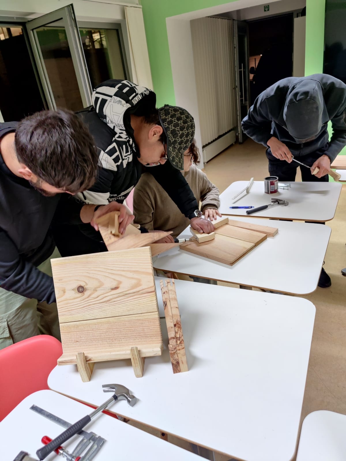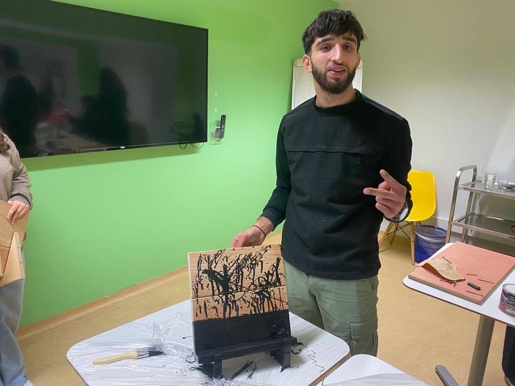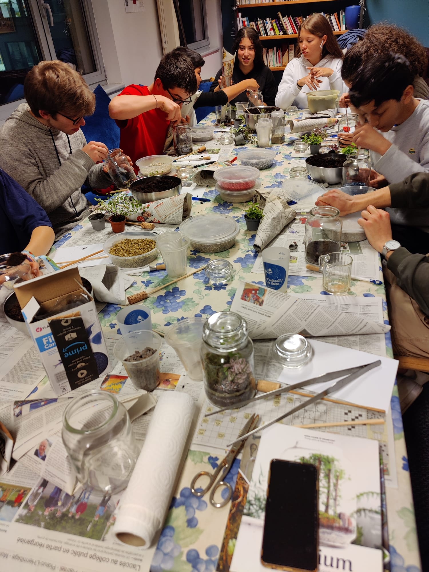 Les AEC ont profité de cette occasion pour rassembler la communauté de cascadeur.euse.s au tour de trois activités artistiques et originales animées par des artistes et experts : la découverte du travail du bois avec Bruno, un atelier couture pas comme les autres avec Donatienne et un plongeon dans l’univers du terrarium avec Chloé. Il y avait une super ambiance dans les trois ateliers, beaucoup d’échange entre les jeunes qui commencent à se connaitre de mieux en mieux. Iels étaient très fières de leurs créations et auraient bien aimé que la soirée se prolonge.