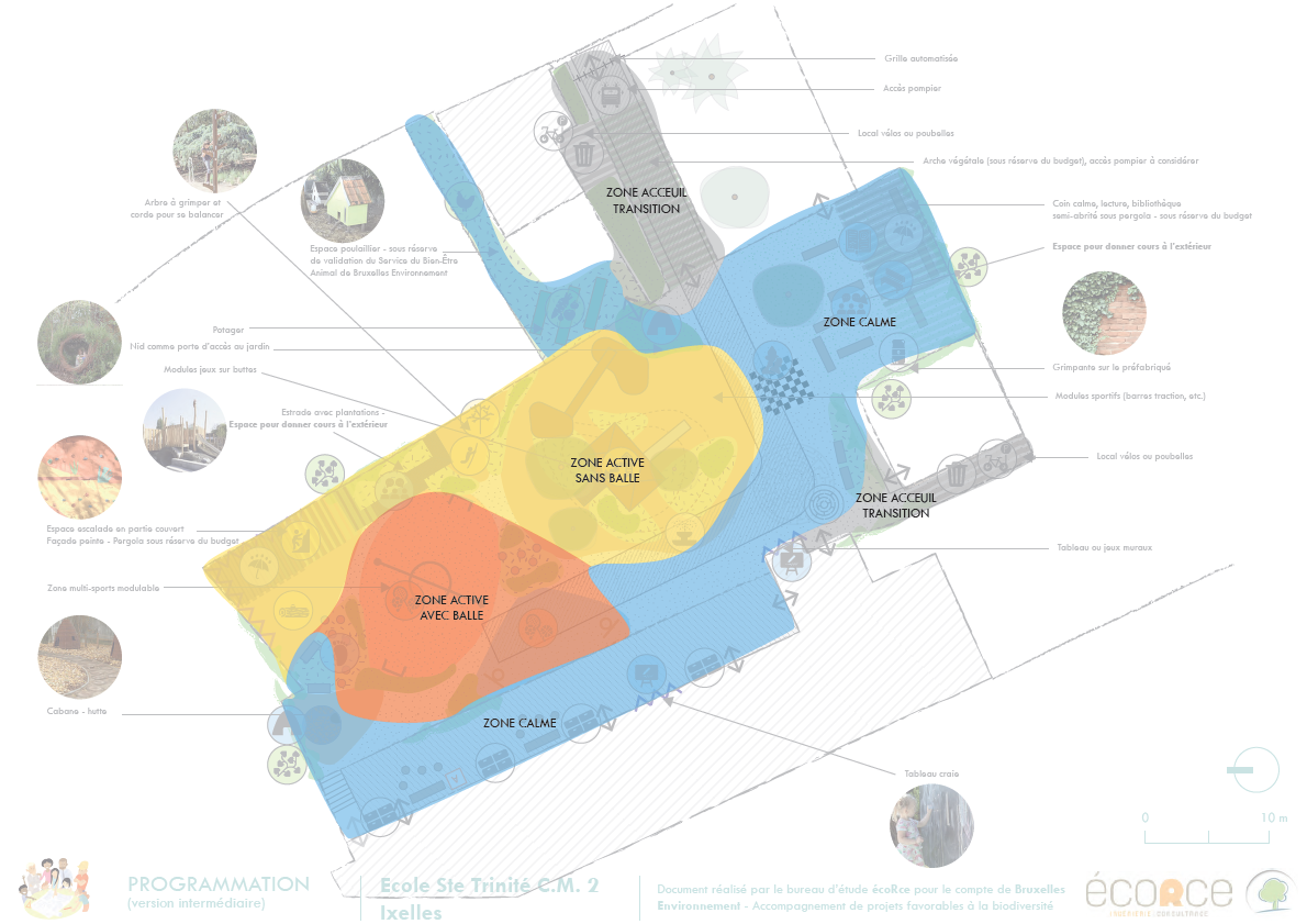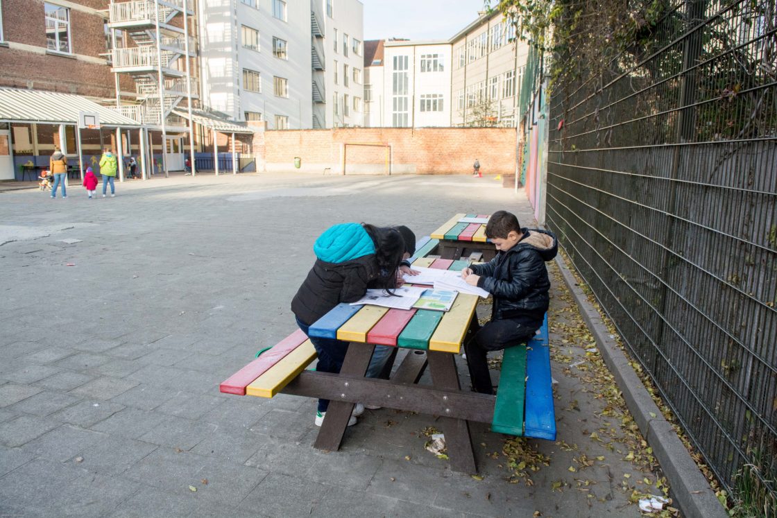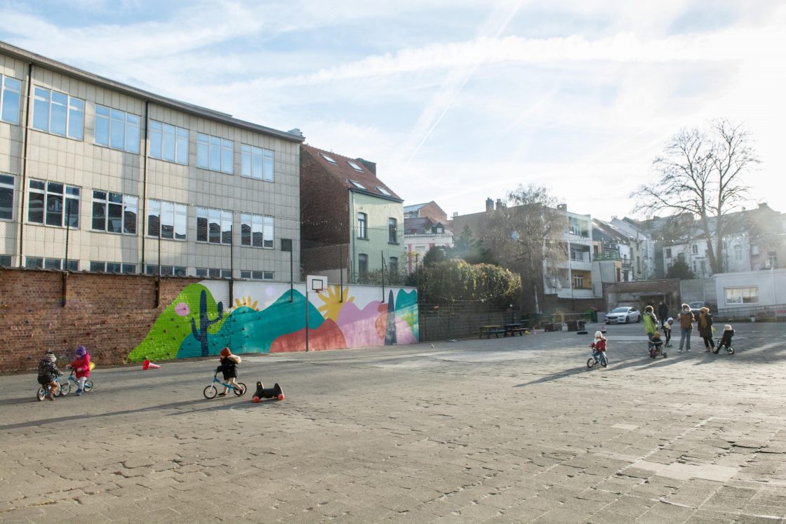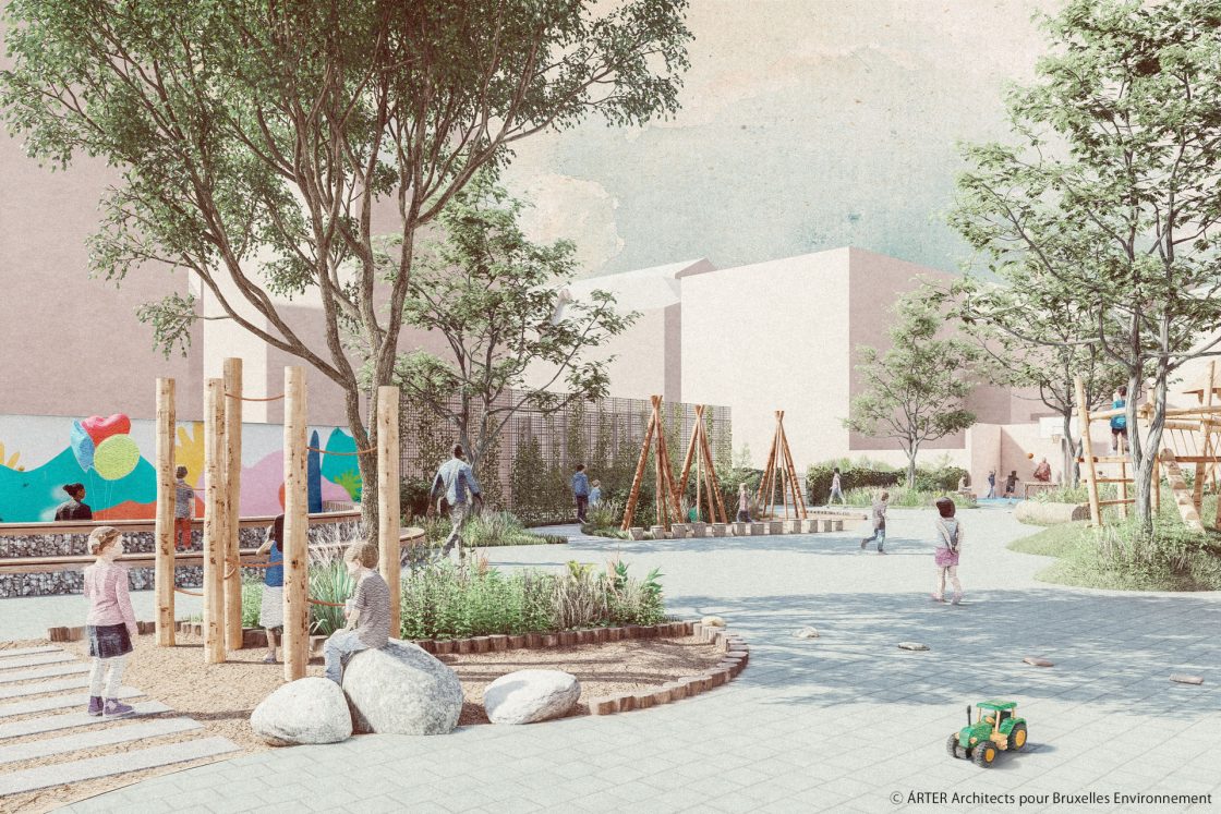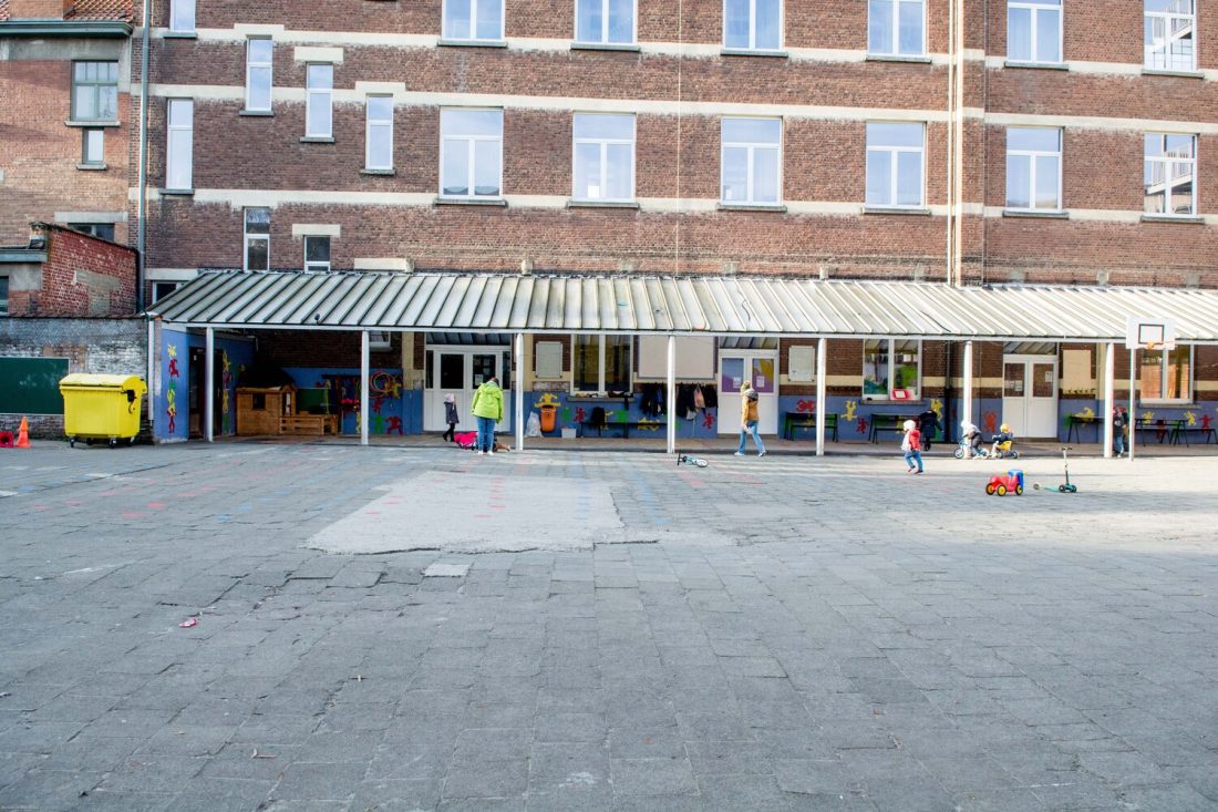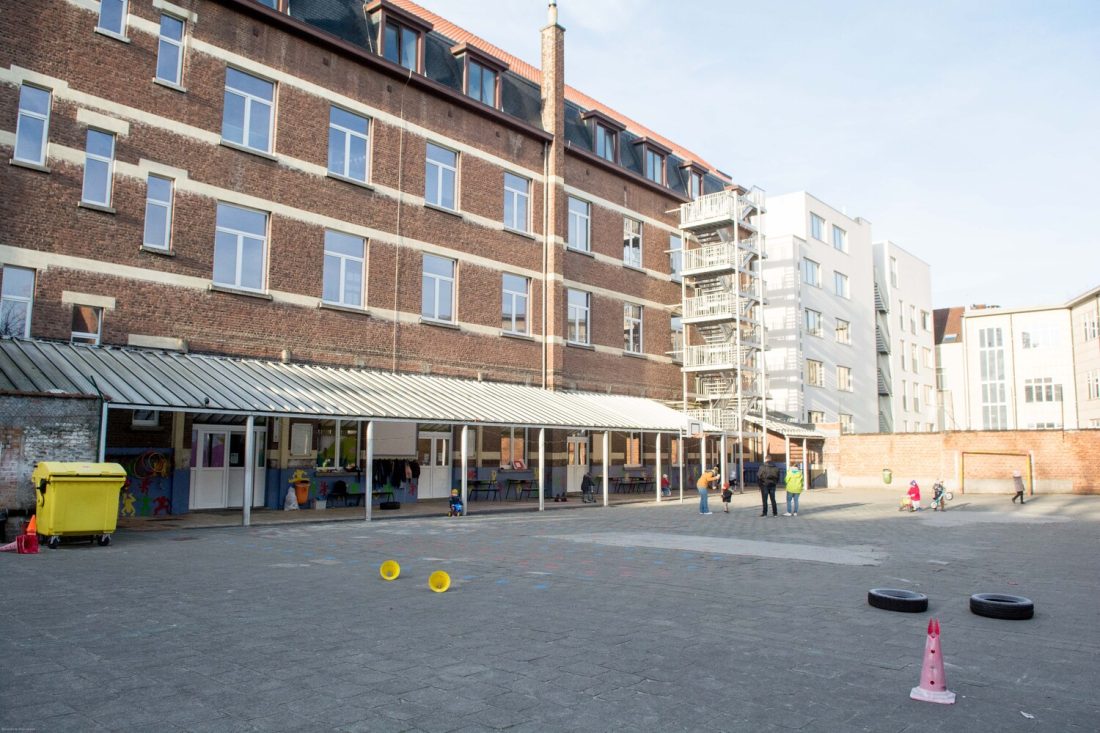 Située à proximité de la Place Flagey, l’école accueille des élèves issus de milieux et de cultures diverses. L’éveil à l’environnement est une priorité pour l’équipe pédagogique, qui s’investit avec enthousiasme dans le projet. Certains espèrent même pouvoir enseigner en plein air de temps en temps. Ils souhaitent que les enfants puissent profiter de l’espace de récréation quelques soient les aléas climatiques, en faire un lieu pour jouer, se reposer, dialoguer, découvrir, apprendre… mais aussi ouvert aux activités extra-scolaires en toute saison !