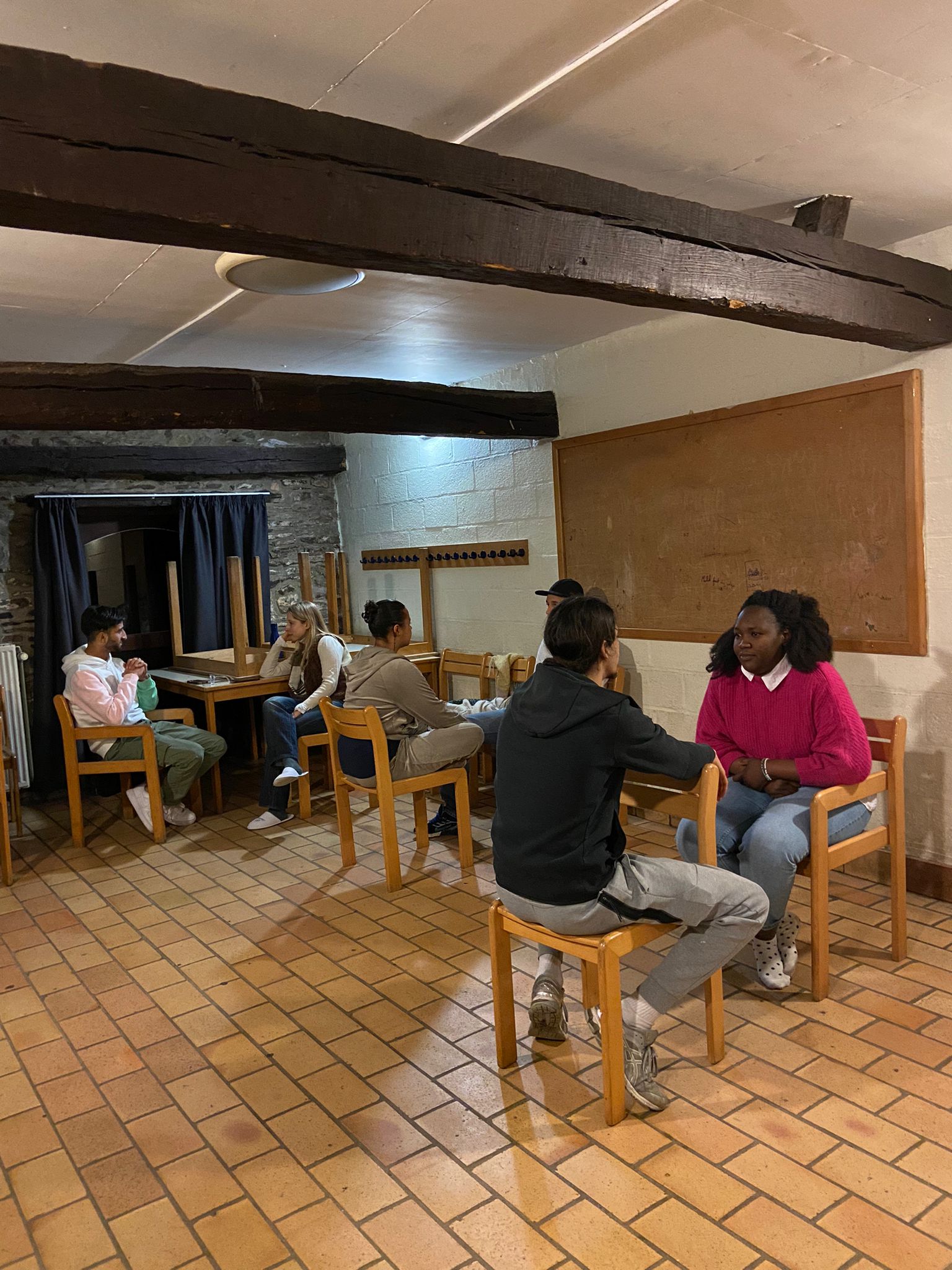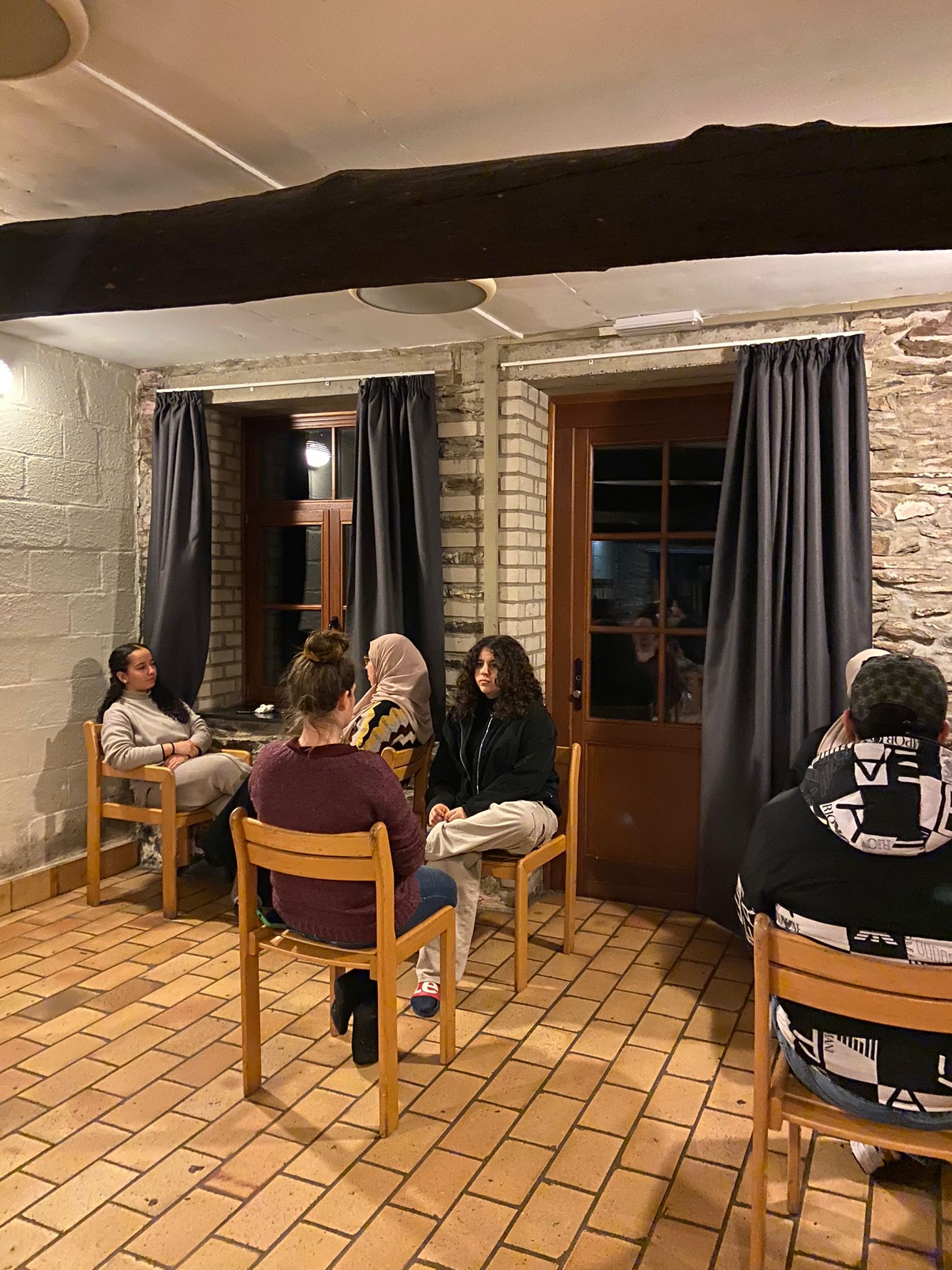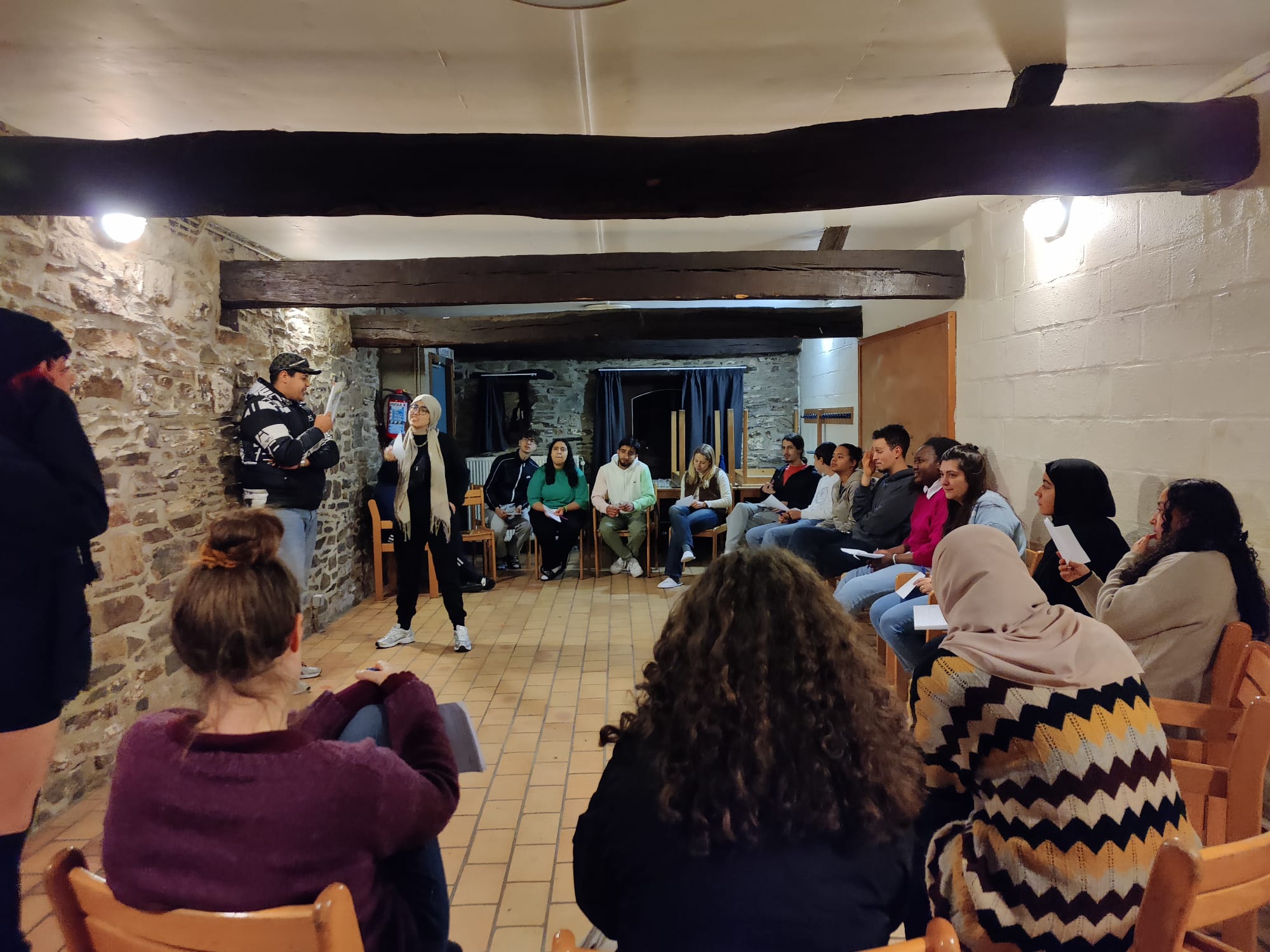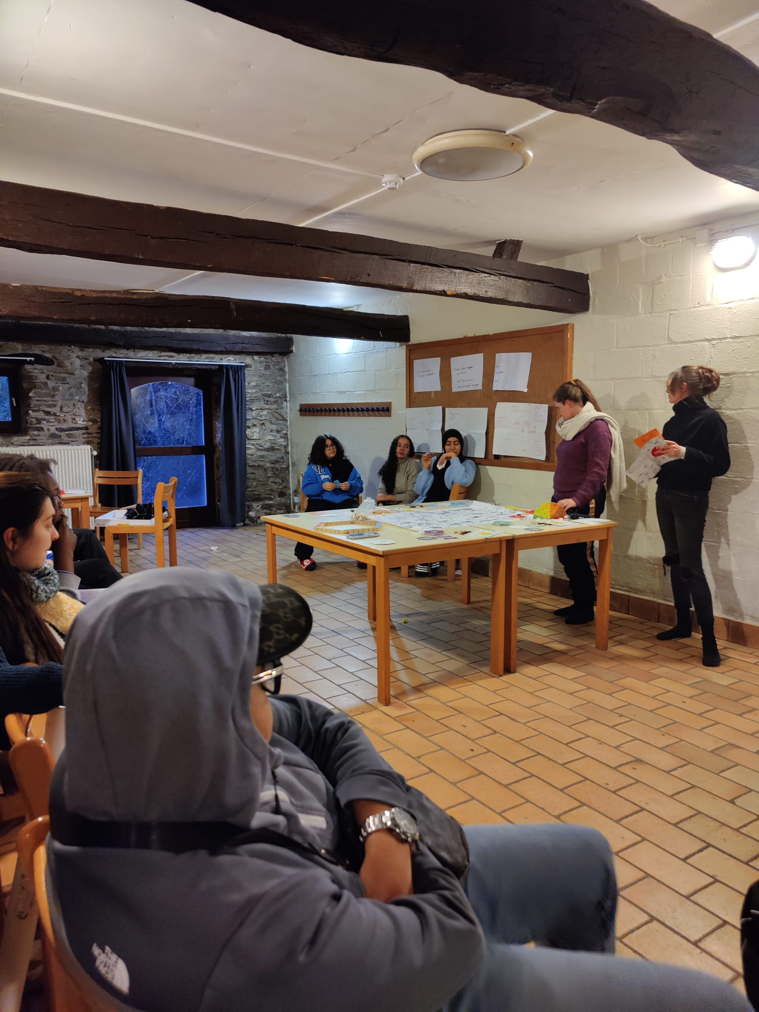 Deuxième week-end entre cascadeur.euse.s, direction la campagne. Une mise au vert, entre les participant.es du projet cascade issu.es de différentes associations, afin de développer l’esprit de communauté et de cocréer des projets. Quizz, chi ba fu, balade, café philo, atelier culinaire ou encore soirée assertion au coin du feu, toutes les activités se sont déroulées dans une ambiance conviviale et bienveillante. Elles ont permis aux jeunes d’aller à la rencontre les uns des autres, d’échanger, de se livrer, de rire, chanter et de renforcer la cohésion de groupe. Et puis, cela permet aussi aux cascadeur.euse.s de travailler leur bilinguisme ! Cascade rassemble des jeunes francophones et des néerlandophones et iels n’hésitent pas à aller les uns vers les autres et à veiller à ce que chaque membre se sente intégré au groupe. Mais ce n’est pas tout. Cette mise au vert, a aussi permis aux cascadeur.euse.s d’avancer sur les préparatifs de la soirée de la communauté Cascade qui se déroule en avril.